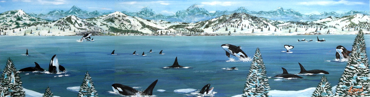 réalisé en souvenir d'un copain qui étudiait les orques en passant au milieu d'eux avec son petit canoë-kayac !