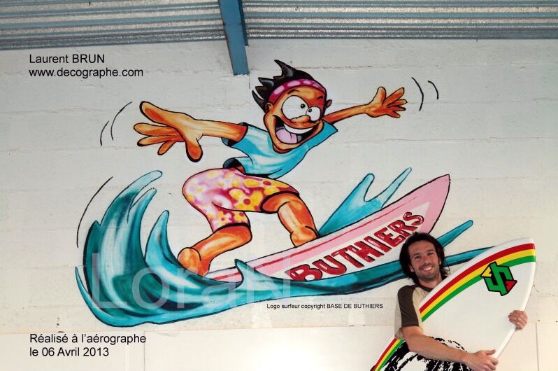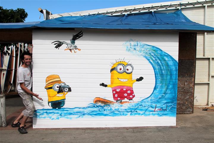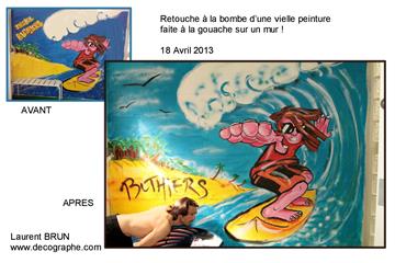 Peint sur le coté de mon cabanon de photos de surfeurs
