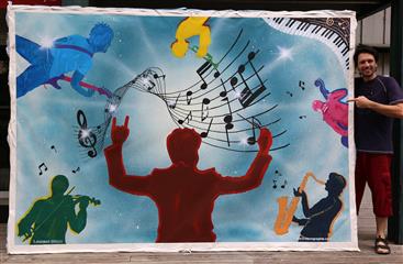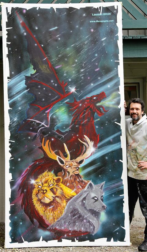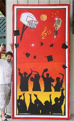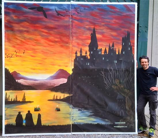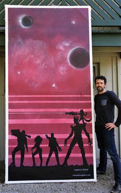 Format: 2,40 x 4 m - Acrylique pistolet et aérographe + pinceaux sur toile plastifiée