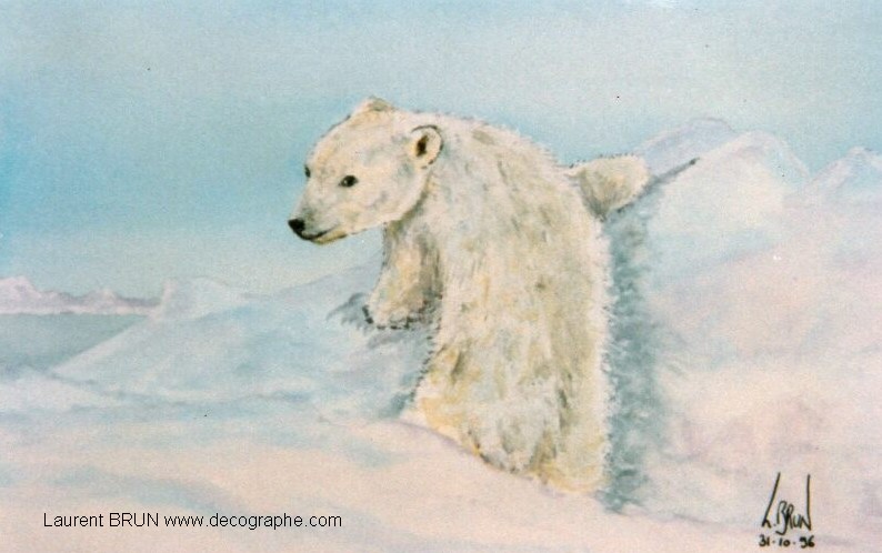Ours blanc ou Ours polaire (de l'anglais polar bear) grand mammifère carnivore originaire des régions arctiques. Il figure au sommet de la pyramide alimentaire.