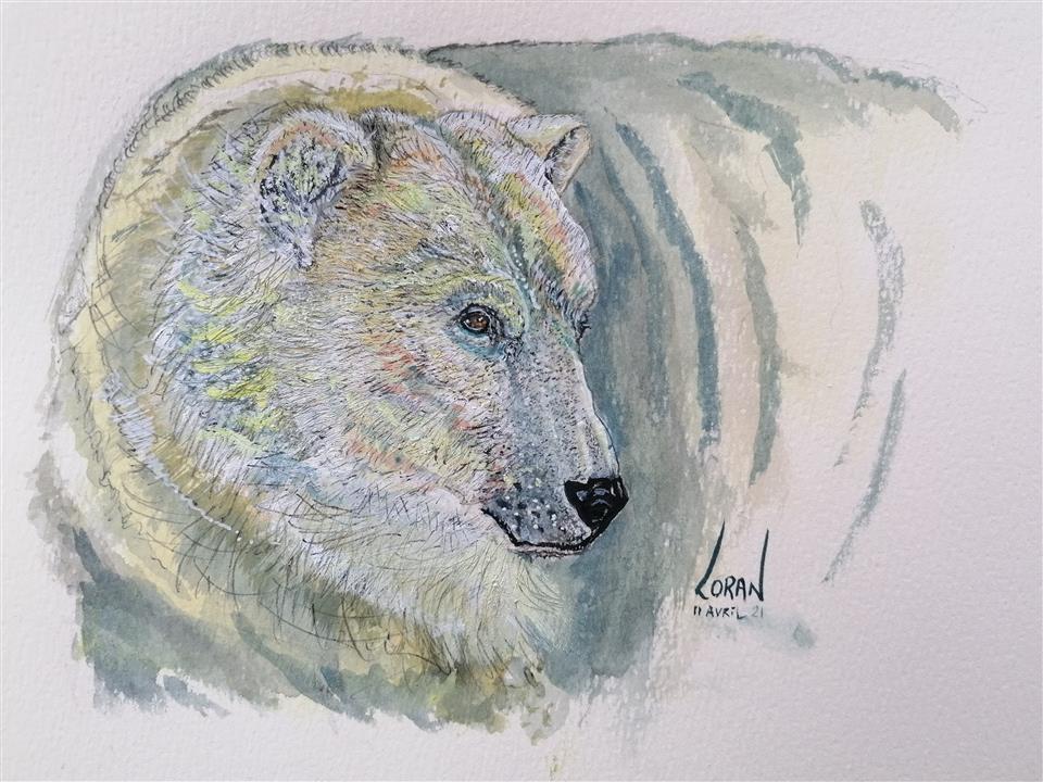 N°158 - L'OURSON RETOURNE Gouache