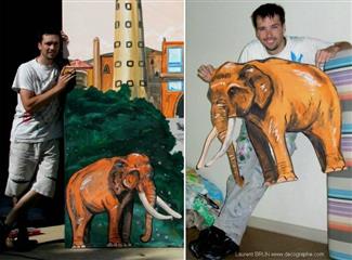 Ci-dessus l'évolution de la transformation du premier éléphant avec la trompe baissé,