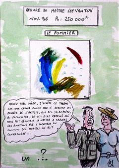 3ème, Une certaine population est capable de s'extasier devant ce genre de tableau en affirmant comprendre ce qu'à voulu exprimer l'artiste. (à noter: la phrase énnoncée fut entendue dans une expo de ce genre et il est une anecdote de musée où c'est au bout de 2 jours que les galeristes se rendirent compte que la toile était exposée à l'envers. Heureusement que les peintres de la renaissance avaient du talent parce que l'on ne comprendrait rien à notre Histoire !