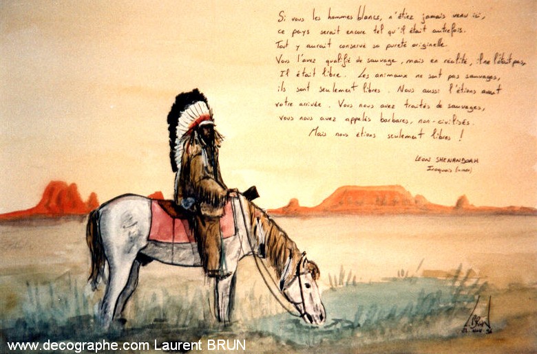 « Si vous les hommes blancs n’étiez jamais venus ici, ce pays serait encore tel qu’il était autrefois. Tout y aurait conservé sa pureté originelle. Vous l’avez qualifié de sauvage, mais en réalité, il ne l’était pas. Il était libre. Les animaux ne sont pas sauvages, ils sont seulement libres. Nous aussi l’étions avant votre arrivée. Vous nous avez traité de sauvages, vous nous avez appelés barbares, non civilisés, mais nous étions seulement libres ! »
