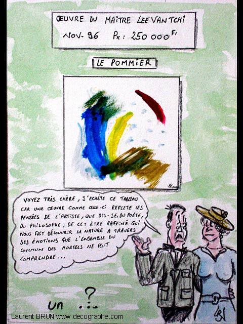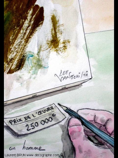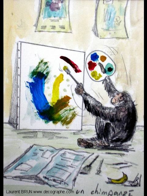 3 images qui démondrent la banalisation et l'absurdité de l'art moderne avec un tableau peint par un singe, vendu par un galeriste et exposé devant des personnes qui sont capable de comprendre ce qu'à voulu exprimé l'artiste, avec une phrase notée dans une expo de ce genre que je ne cautionne pas. Heureusement que les peintres de la renaissance avait du talent parce que l'on ne comprendrait rien à notre Histoire !