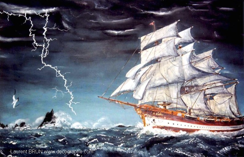 Peinture Murale - VOILIER ARRIVANT SUR LES COTES