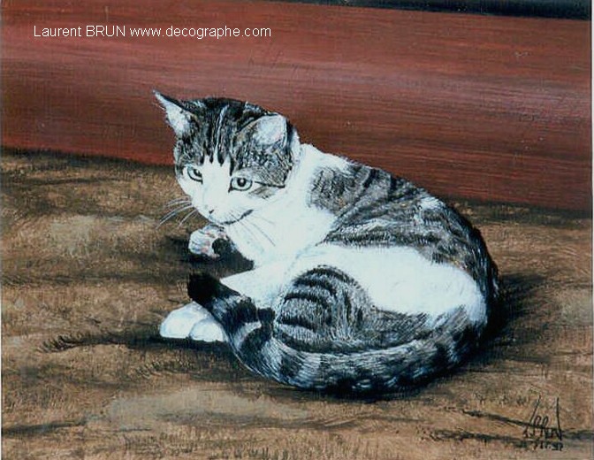 Je maitrise un nouvel instrument qui est l'aérographe et qui permet de réaliser les animaux dans un style hyper-réaliste ( cliquez sur le gros chat que l'on appelle communément un tigre ).