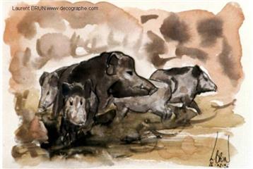 LES SANGLIERS AQUARELLE A