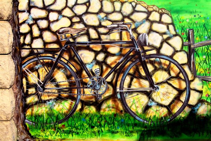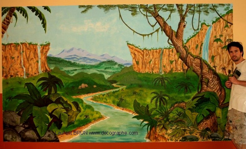 Décor réalisé avec la bombe, l'aérographe et les pinceaux, tout à l'acrylique, chez un particulier à coté du lac de Léon.