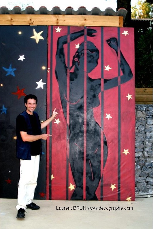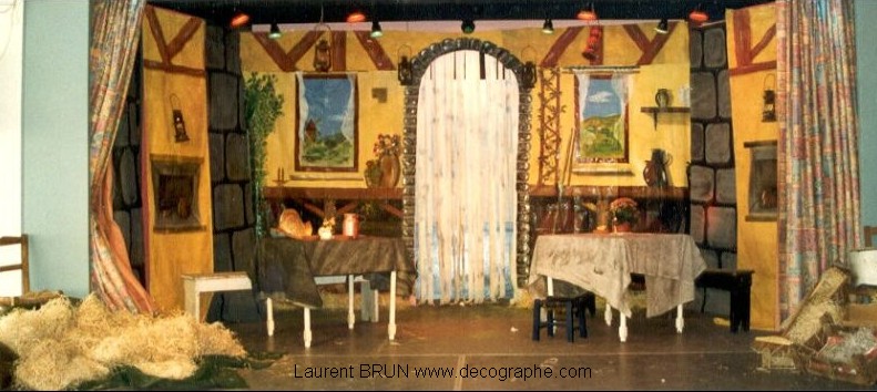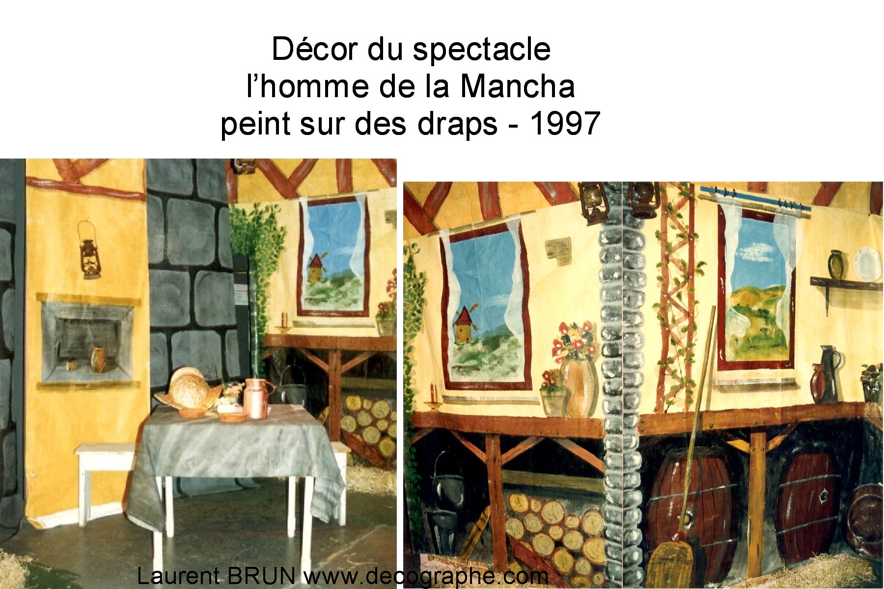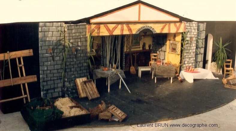 décors de spectacles pour l'homme de la mancha, pour karaoké, cabaret et scène pour le show Laurent BRUN, décographe