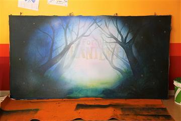 les herbes en premier plan ont d'abord servi à cacher des croutes de l'ancienne peinture dessous qui s'écorchait!