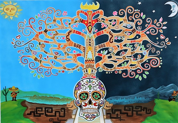 Le jour de la fête des morts (Día de Muertos) est une tradition mexicaine d’origine mésoaméricaine, qui honore les défunts le 1er et le 2 novembre. Les dates coïncident avec les fêtes catholiques de la Toussaint.