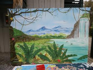 Décor de 2.20 x 3 m - Pinceaux - Éponge et Aérographe. 10 h de boulot