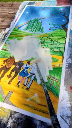 Image n°1 et 2 : je repeins en blanc les anciens décors de l'an dernier (Astérix et le Magicien d'Oz)