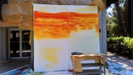 1 Seule journéé pour réaliser ce tableau géant entre aéographe et pinceaux et d'abord en intérieur avec le chien qui dort !