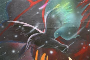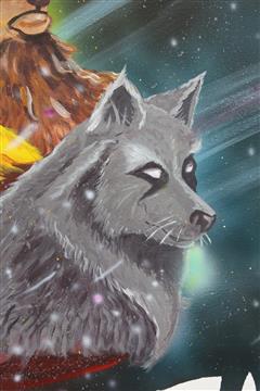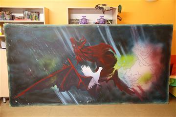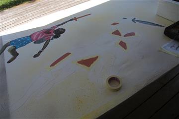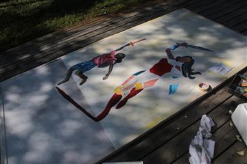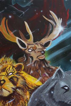 Ce jour là, j'étais inspiré par le thème, je l'ai fait en une journée. Pour réaliser la panthère, je me suis mis devant la toile avec un pinceau dans chaque main,6 pots de couleurs au bas de la toile, et je suis parti tel en artiste en transe.