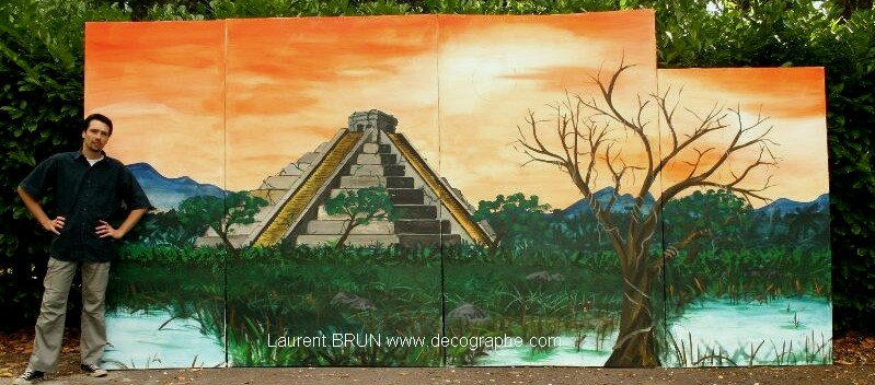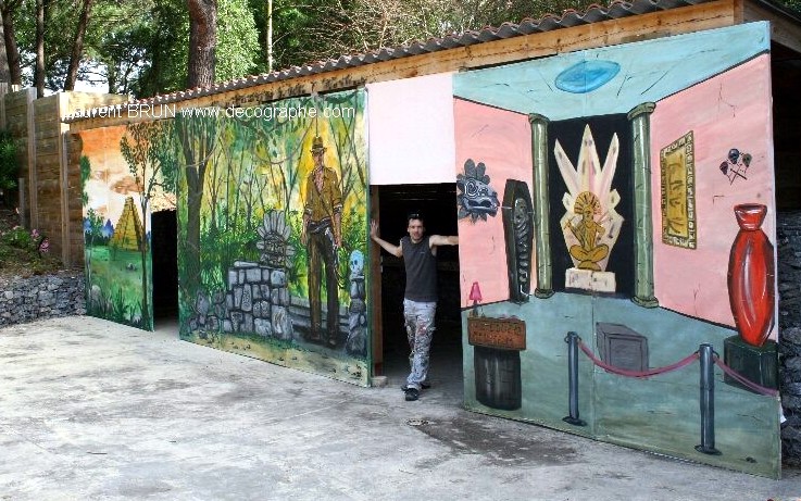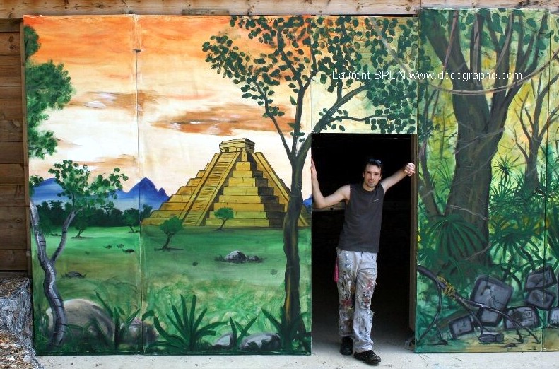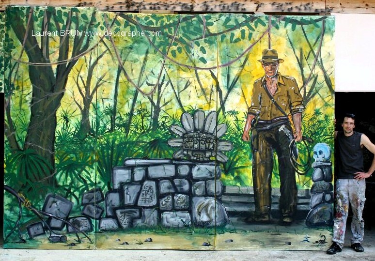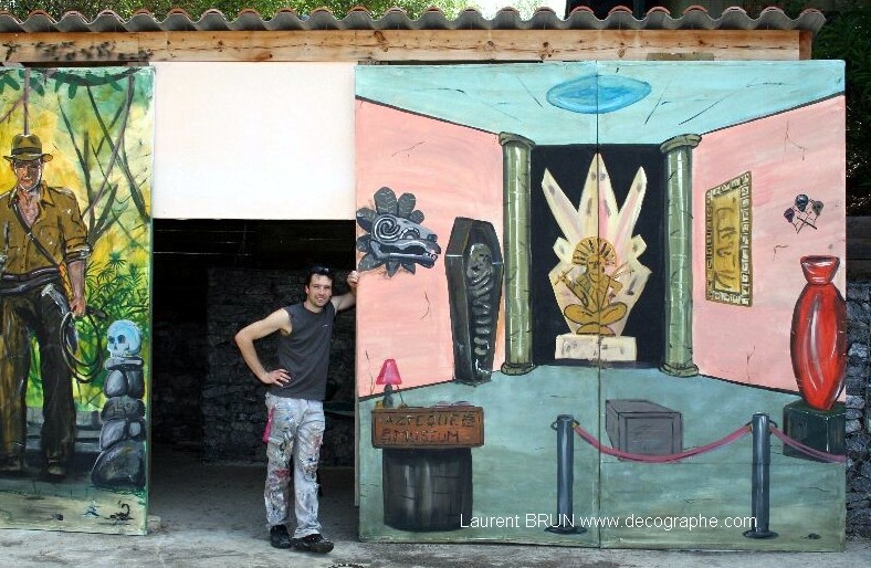 décor indiana jones,jungle,pyramide inca,maya,ruine,crâne de cristal,musée archéologie,pérou,amérique du sud INDIANA JONES, décor de spactacle, Laurent BRUN, décographe chez les incas à la recherche du crâne de cristal