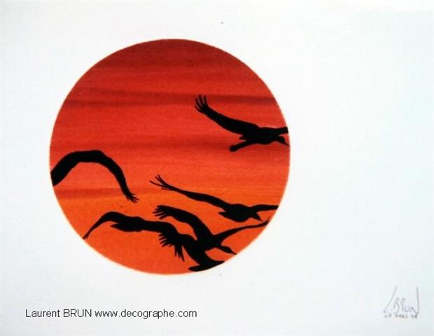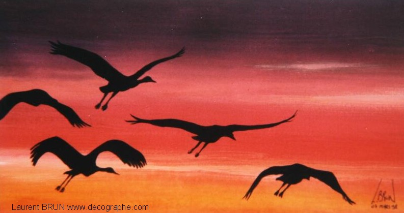 n°204 - LES 5 GRUES EN VOL
