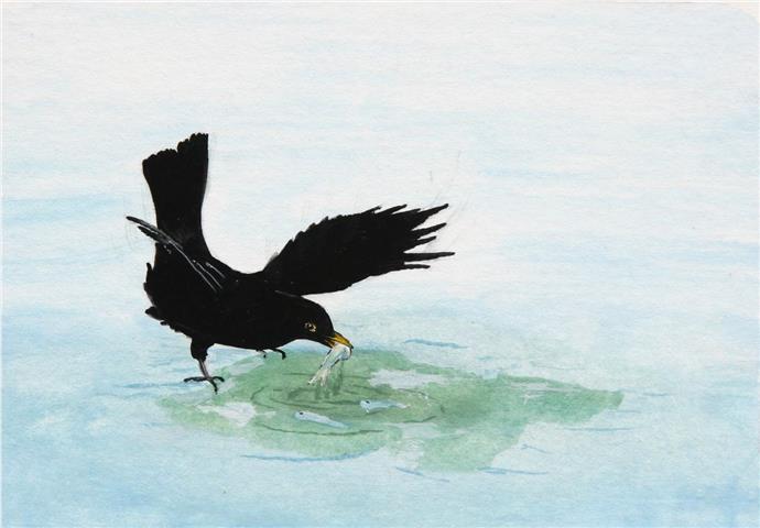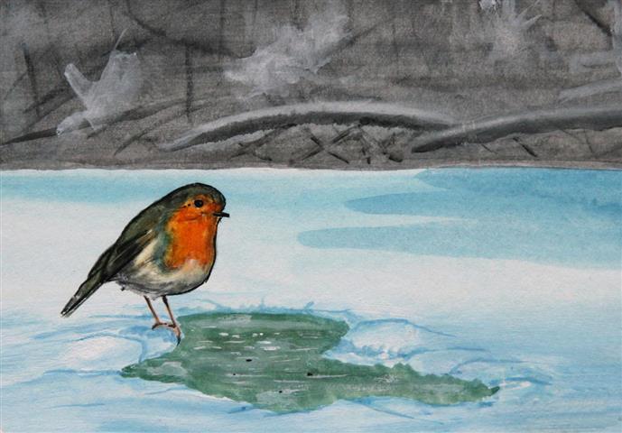 De plus, un tableau seule montrant un Rouge Gorge avec un poisson ???