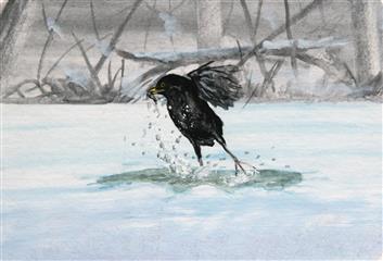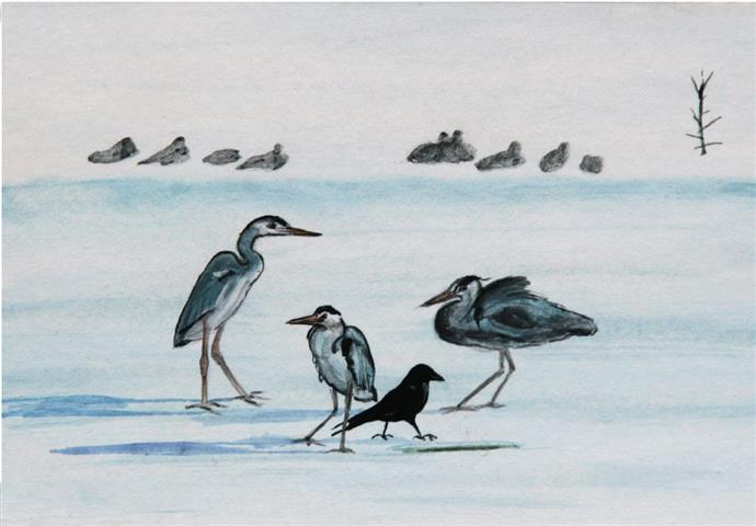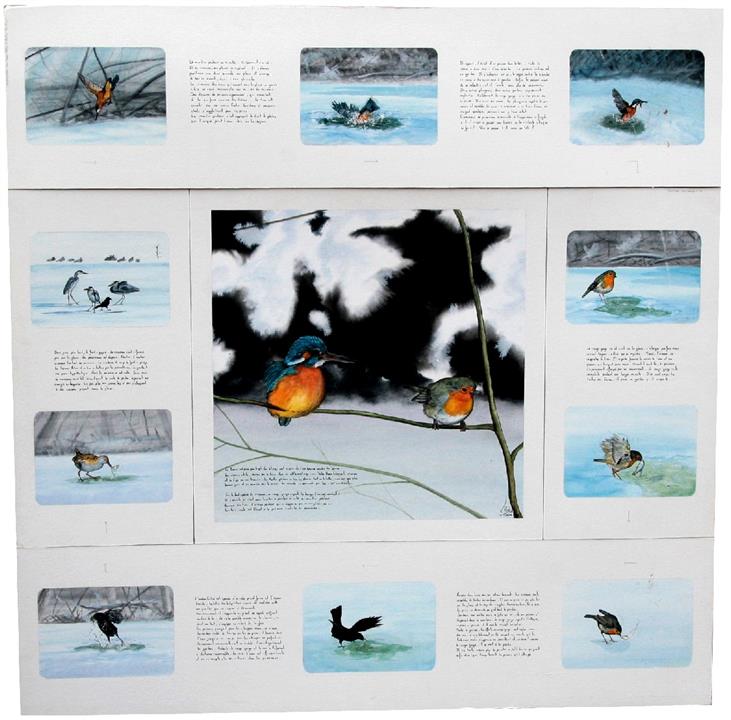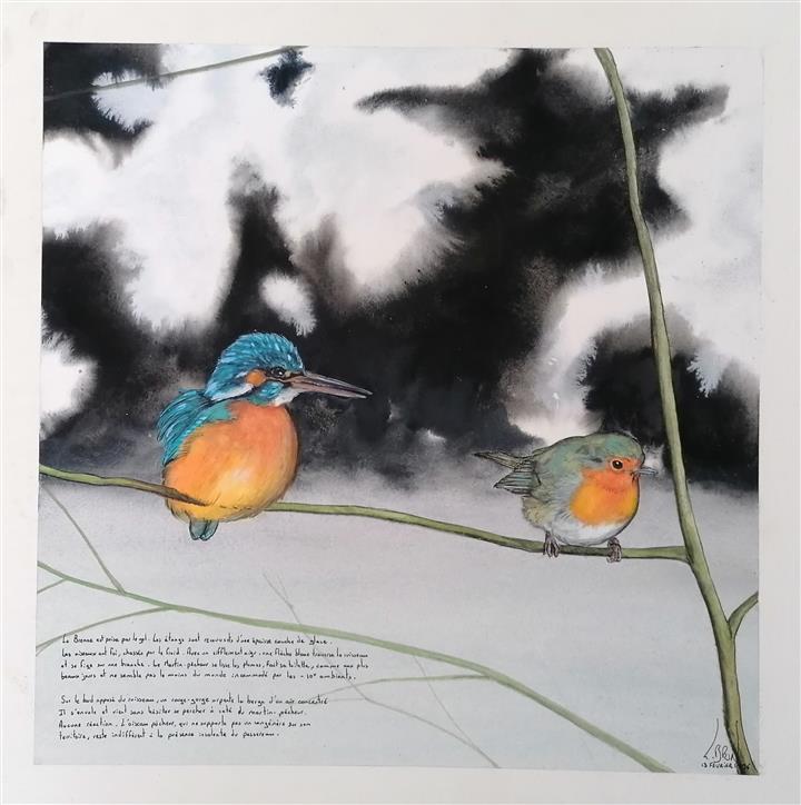 J'ai retouché le fond qui avait été légèrement rayé, j'ai amélioré les oiseaux de très peu et remis un éclat blanc dans les yeux le 21-03-2022
