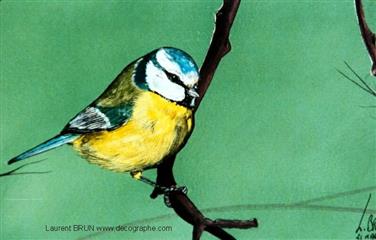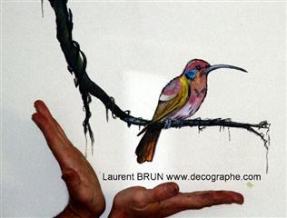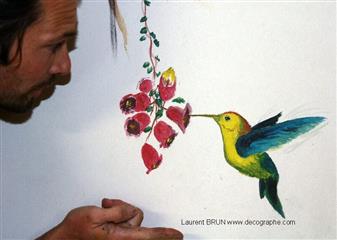 Commande d'un sculpteur pour colorer l'oiseau et sa fleur
