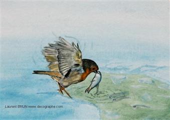 Reproduction d'une couverture d'un magazine de la LPO. Lorsque je l'ai présentée à ma mère, elle m'a dit que c'était jolie mais elle m'a reproché de ne pas avoir continuer mes études, et qu'on ne pouvait pas vivre de ça !